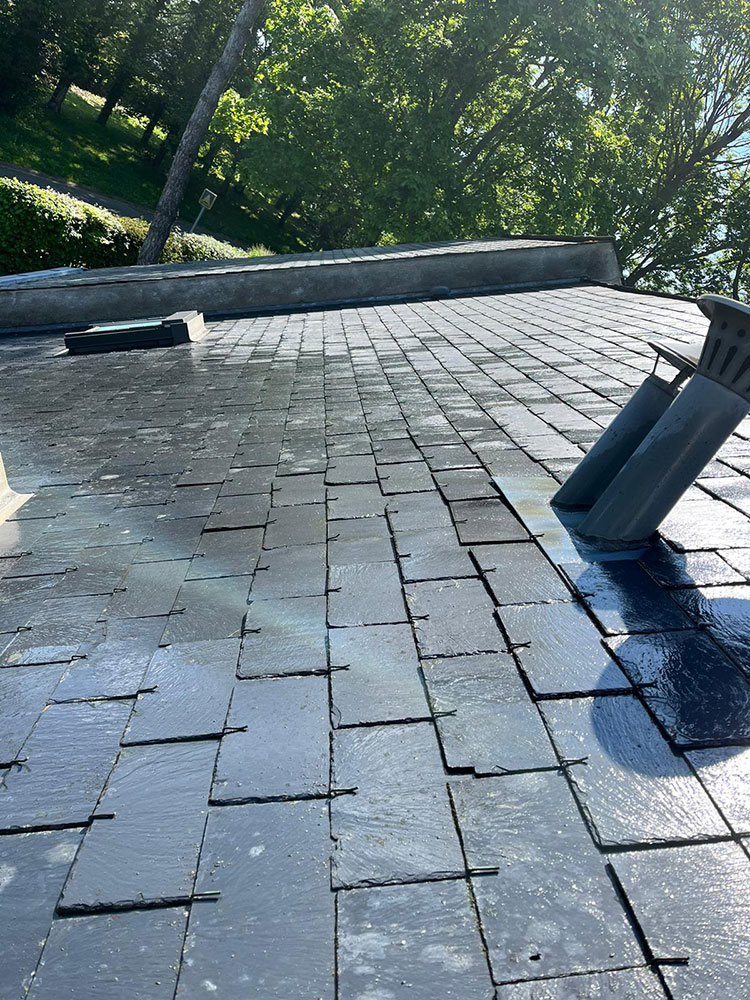 Notre équipe est intervenue pour le démoussage et le nettoyage d’une toiture à Nogent-le-Rotrou (28400). Faites appel à notre équipe pour vos travaux de démoussage dans tout le département 28. Intervention 24/24 et 7/7.